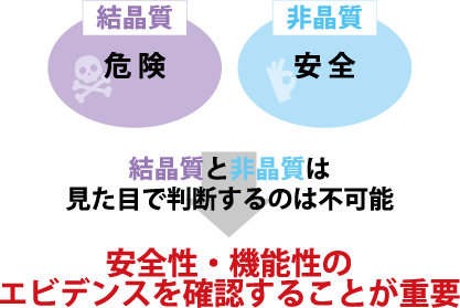 原料・製品共に専門機関で検査を受け、非晶質であることが証明されています。